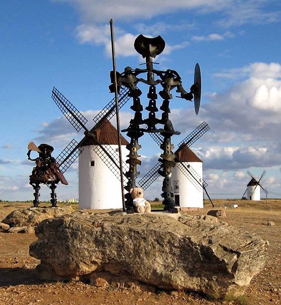 “Porque ves allí, amigo Sancho Panza, donde se descubren treinta o pocos más desaforados gigantes, con quien pienso hacer batalla y quitarles a todos las vidas […]